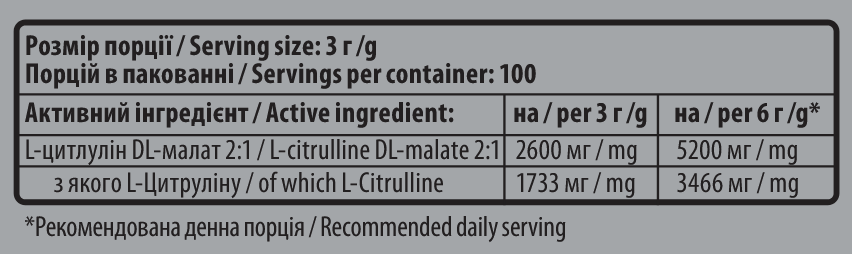 - Мінімально ефективна дозування цитруліна - 3 г.